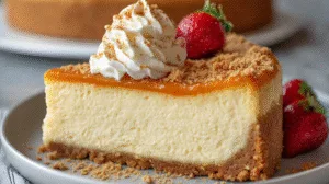 The third essential technique is slow baking and cooling. Bake at a moderate temperature and let the cheesecake cool gradually in the oven with the door cracked. This prevents sudden temperature changes and keeps the surface smooth and flawless, just like a classic baked cheesecake from a professional bakery.