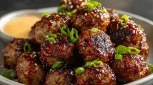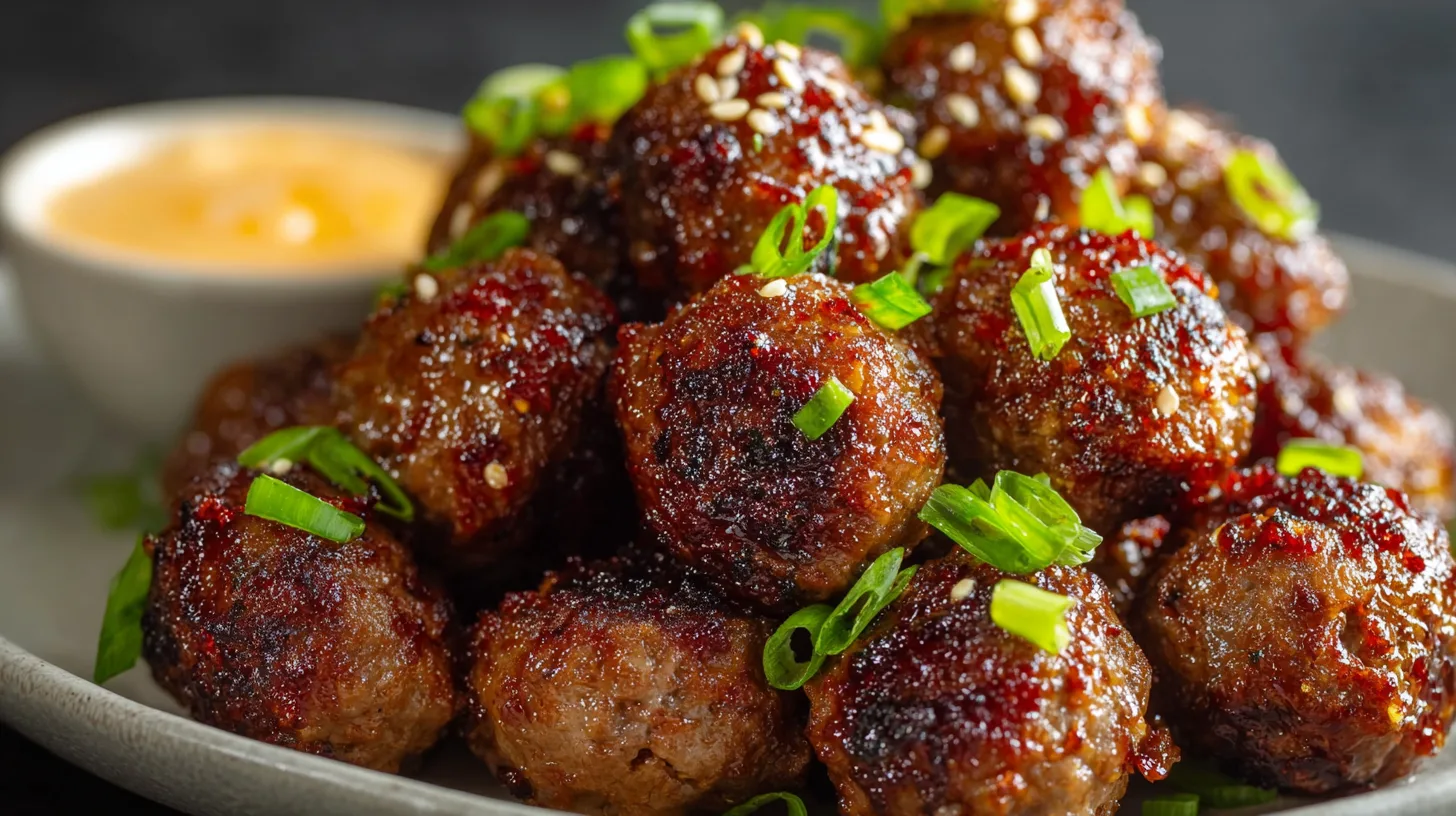 Korean BBQ Meatballs with Spicy Mayo Dip