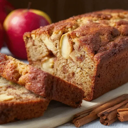 Store your Apple Bread Recipe tightly wrapped at room temperature for up to 3 days. For longer storage, refrigerate it for up to 1 week or freeze individual slices for 2 months. To serve, enjoy it plain with coffee, lightly toasted with butter, or drizzled with honey. It also pairs beautifully with yogurt for breakfast or vanilla ice cream for dessert. This bread fits seamlessly into brunch spreads alongside dishes like baked apple oatmeal or even savory favorites such as garlic pasta with bacon for contrast.