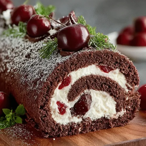 This Elegant Black Forest Cake Roll A Decadent Dessert Delight is comfort food at its finest — a visually stunning dessert that balances rich chocolate and sweet-tart cherries in every bite. It’s the kind of dish that makes celebrations memorable and elevates any dinner into a gourmet experience. Perfect for sharing with loved ones, this cake roll delivers both elegance and indulgence with minimal effort.