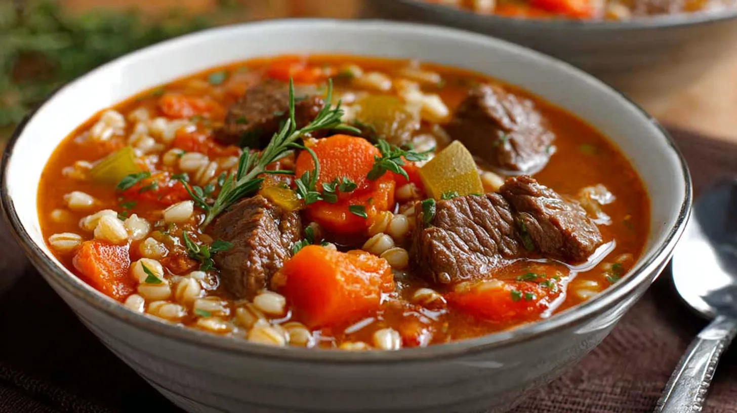 This Beef Barley Soup Recipe is comfort food at its finest — a rich, hearty soup packed with tender beef, wholesome barley, and deeply developed flavor. It’s the kind of dish that warms you from the inside out and turns an ordinary evening into a cozy, satisfying meal you’ll crave again and again.