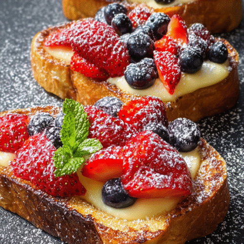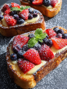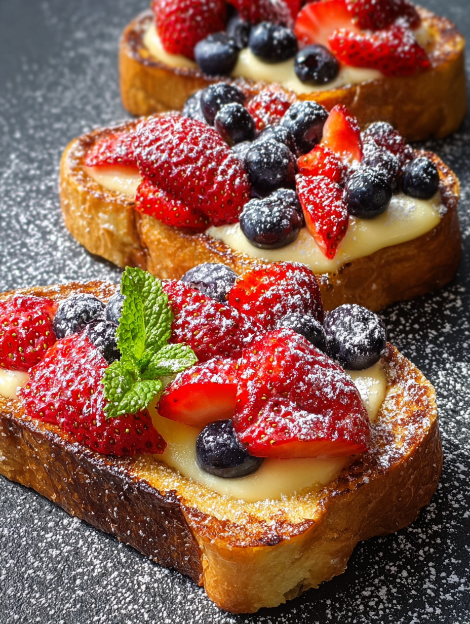 Fruit-Topped Yogurt Custard Toast – Add sliced strawberries, blueberries, or bananas after cooking for natural sweetness and color.