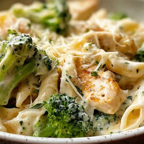 Store leftover Chicken and Broccoli Alfredo in an airtight container in the refrigerator for up to 3 days. Reheat gently on the stovetop with a splash of milk or cream to revive the sauce. Avoid high heat, which can cause separation. Serve this dish with warm garlic bread, a crisp green salad, or roasted vegetables for balance. For entertaining, garnish with extra Parmesan and cracked black pepper to elevate presentation without extra effort.