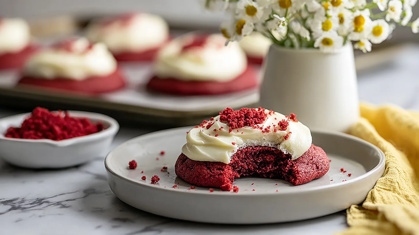 You can customize Classic Crumbl Copycat Red Velvet Cookies to suit your preferences. Add white chocolate chips for extra sweetness and contrast. For a cream cheese twist, top baked cookies with a light cream cheese frosting once cooled. To make a gluten-free version, substitute a 1:1 gluten-free flour blend. If you prefer a darker flavor, increase cocoa powder slightly for a richer red velvet crinkle cookies copycat vibe. These variations keep the recipe flexible while maintaining that signature bakery-style look.