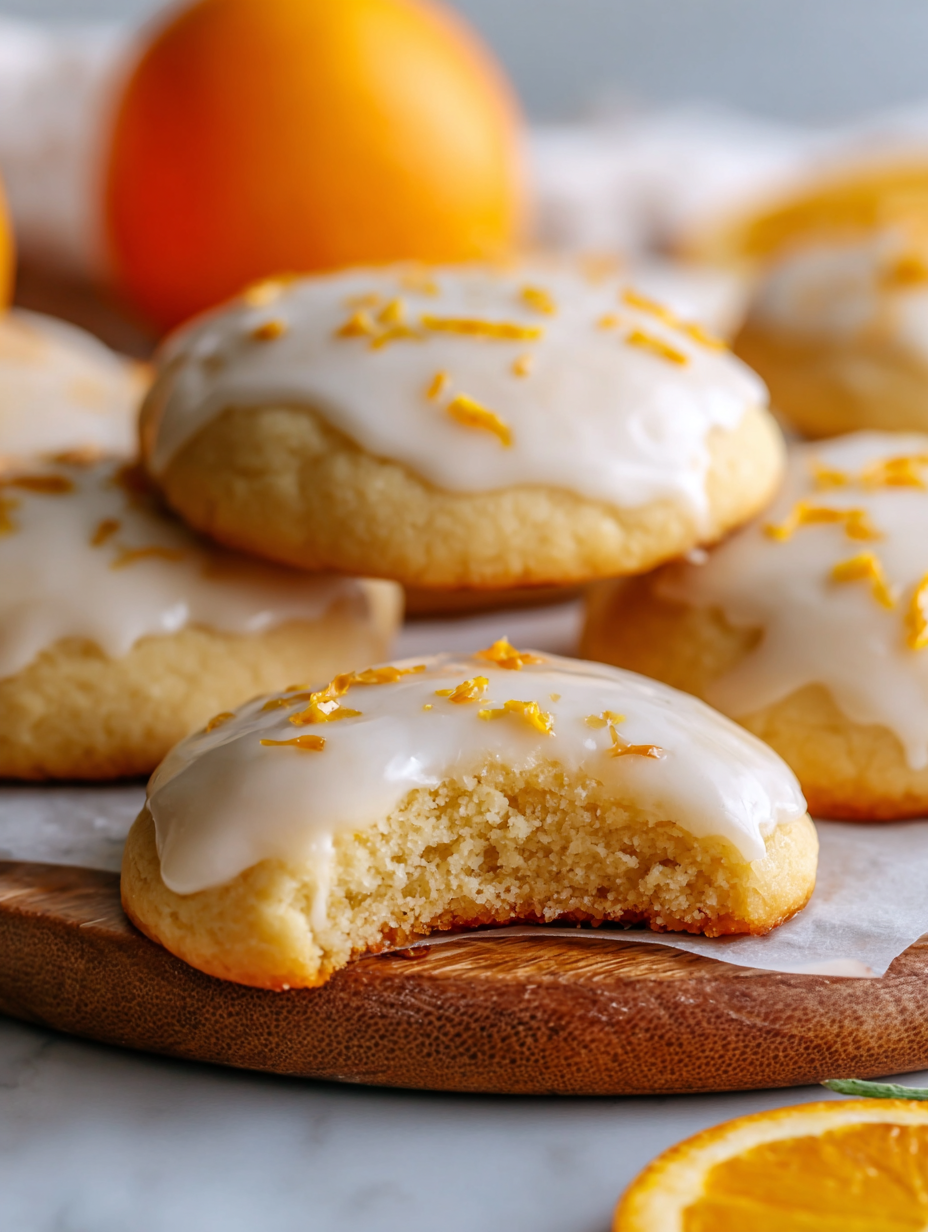 - Cream butter and sugar until light and fluffy.Add eggs one at a time, then mix in orange juice, zest, and vanilla.Whisk flour, baking powder, and salt in a separate bowl.Combine dry ingredients with wet mixture to form a soft dough.Roll dough into small balls and place on a baking sheet.Bake at 350°F (175°C) for 10–12 minutes.Cool cookies completely on a rack.Mix glaze ingredients and drizzle or dip cookies before serving