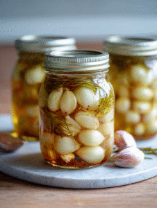 You’ll also appreciate how easy this recipe feels. No complicated equipment or advanced canning skills are required. You peel, simmer the brine, pour, and wait. That’s it. The contrast between crisp garlic and sharp vinegar creates a vibrant pop in every bite.